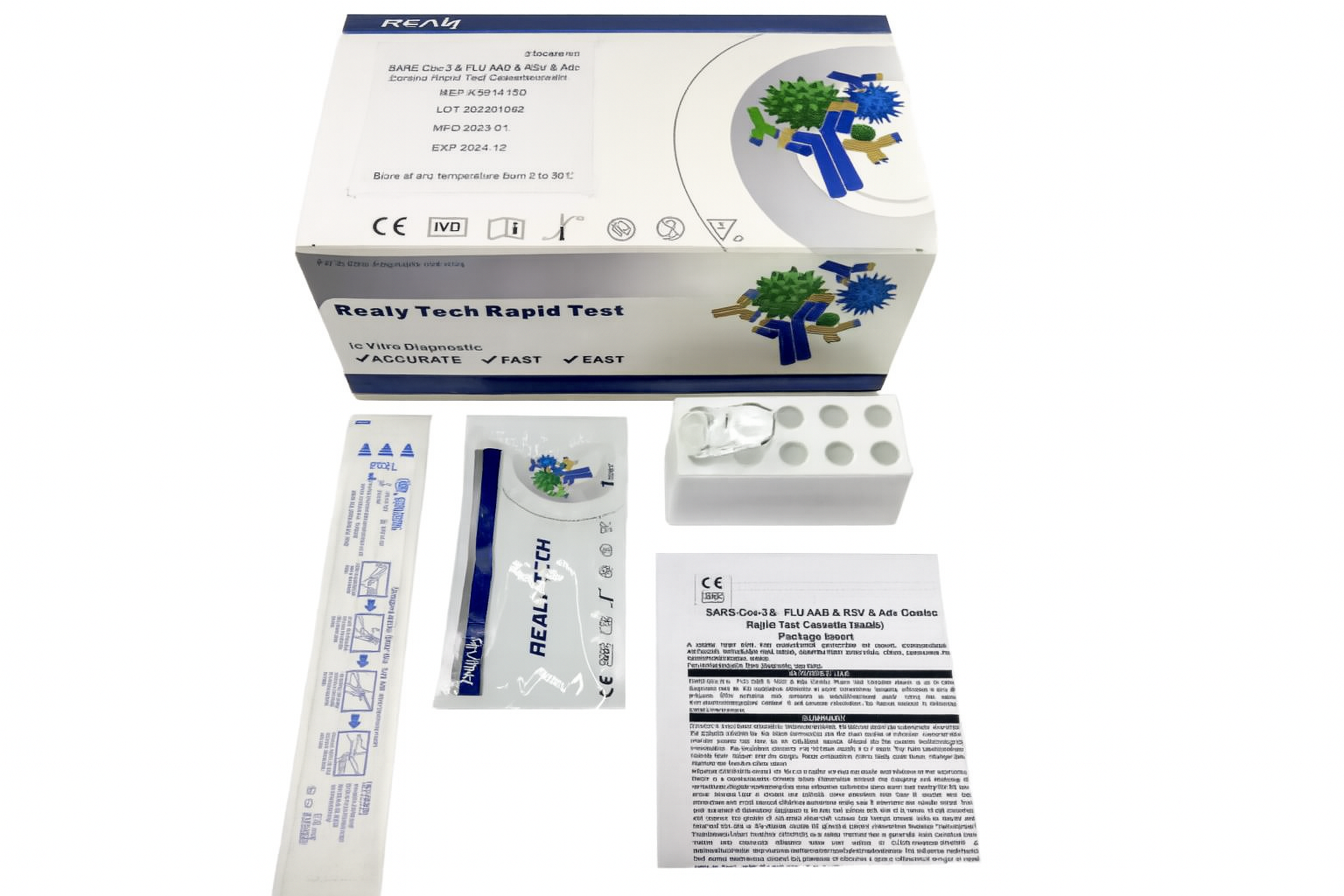 SARS-CoV-2 & Influenza A/B & RSV & ADV ( adenovirus) Antigen Combo Rapid Test kit REALY TECH